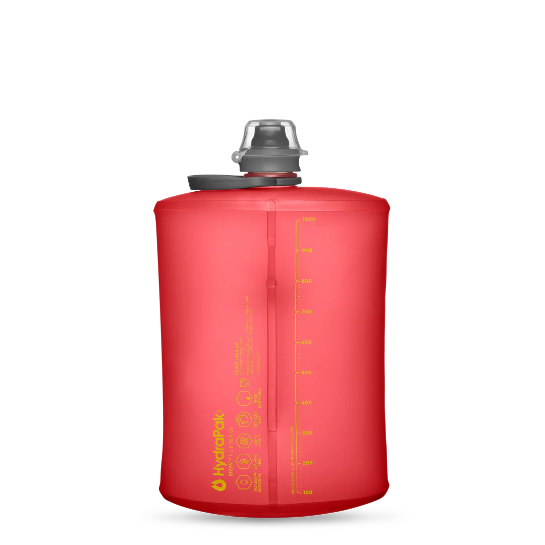 A trail companion like no other, the flexible Stow™ 1L has an internal baffle that makes it easier to hold and pocket. An easy-open flip cap cover protects the spill-proof nozzle when not in use and the bail handle makes for more comfortable carrying and attachment. Convenience meets performance.